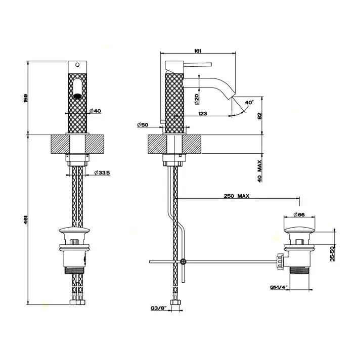 Gessi 316 Смеситель для раковины, на 1 отв., высокий h=30.5cм, с донным клапаном, излив: 15.5cм, цвет: Black XL