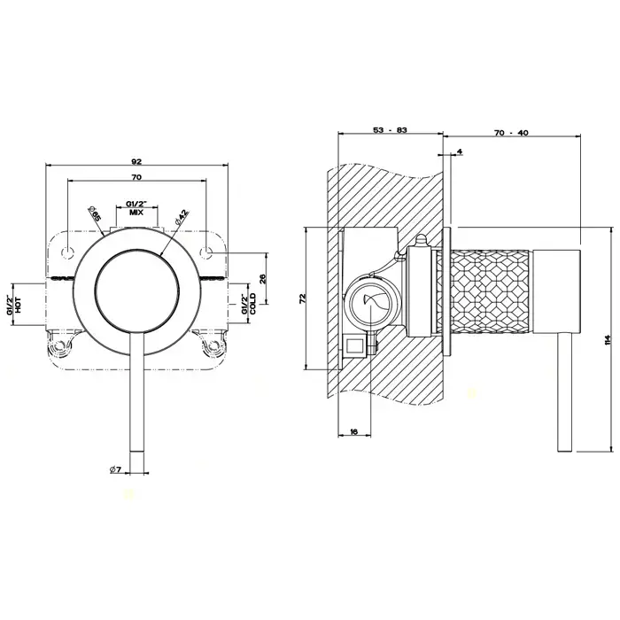 Gessi Intreccio Встраиваемый однорычажный смеситель, картридж Ø35мм,одна позиция, внешняя часть, цвет: шлифованная сталь