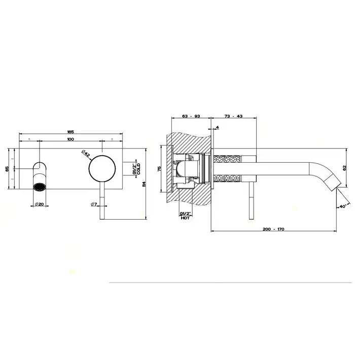 GESSI 316 Встраиваемый смеситель для раковины с изливом 200-170мм (внешняя часть), цвет: steel brushed