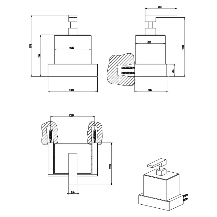 GESSI INVERSO ACCESSORIES Дозатор для жидкого мыла настенный черный, цвет: Brass Brushed PVD