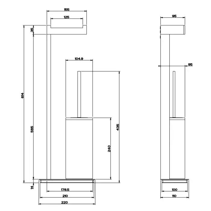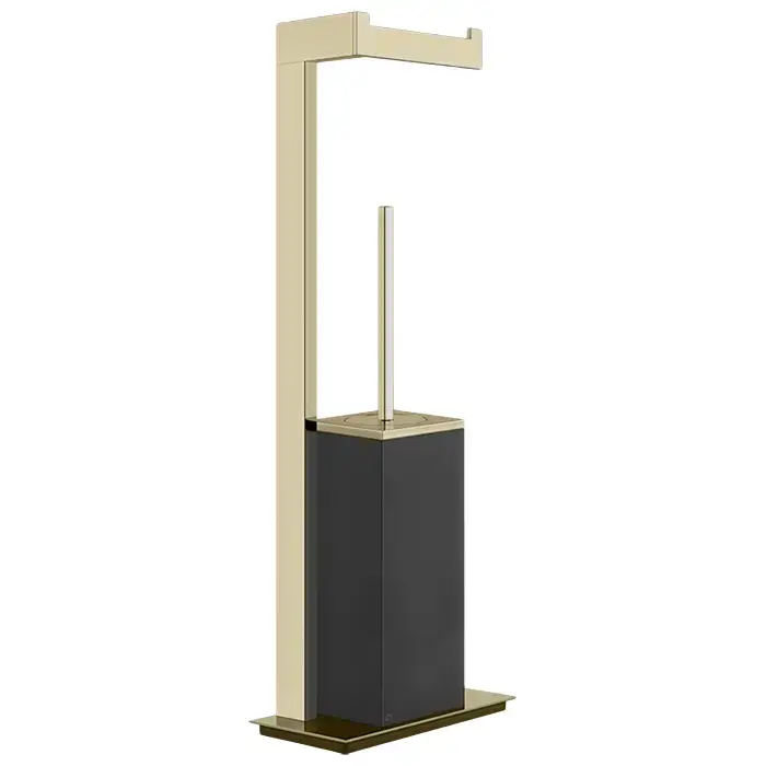 GESSI INVERSO ACCESSORIES Напольный держатель для туалетной бумаги и ершик, черный, цвет: Brass Brushed PVD