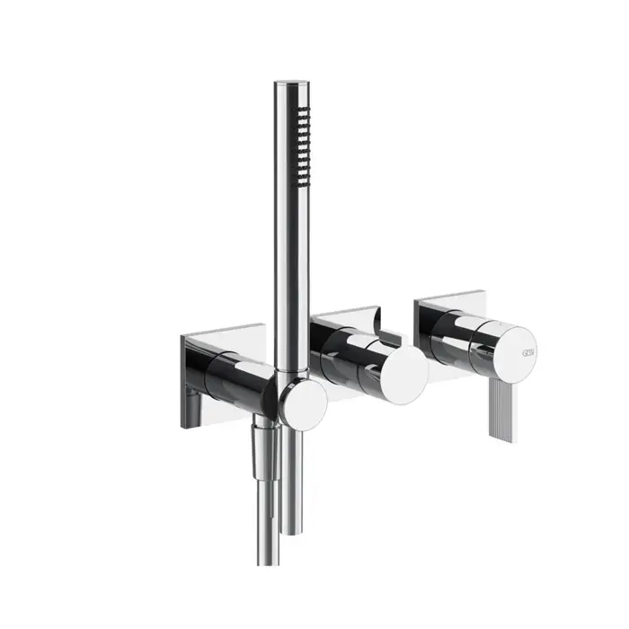 GESSI INVERSO RIGATO Внешняя часть настенного смесителя для душа на 2 выхода с перекл и ручным душем , цвет: хром