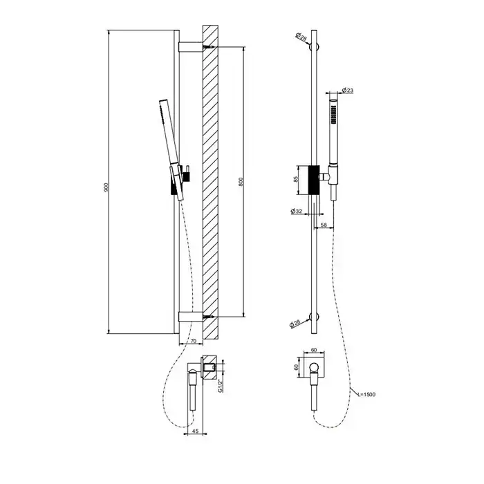 GESSI INVERSO RIGATO Штанга в комплекте с душевой лейкой с защитой от известкового налета, гибкий шланг 1,50 м цвет: хром