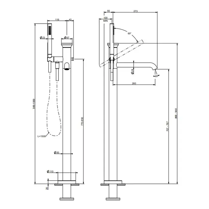 Gessi Origini Смеситель для ванны, наполньный, с ручной лейкой, в комплекте вставка., цвет: Black Metal Brushed PVD