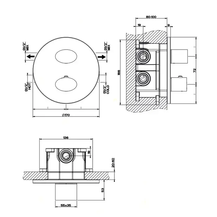 Gessi Ovale Смеситель для душа, термостатический, цвет: хром