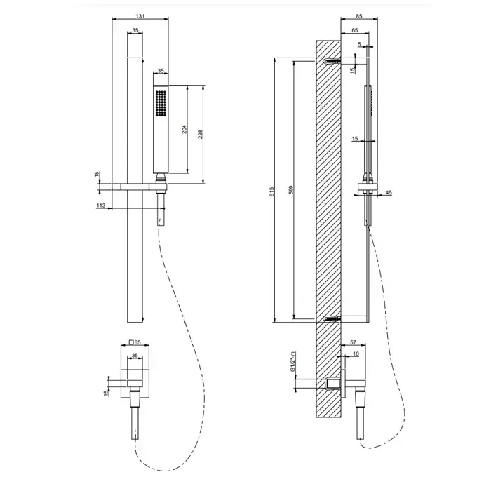 Gessi Rettangolo Система сбора воды для ручного душа с убирающимся шлангом при монтаже на борт ванны, цвет: Black Metal Brushed PVD