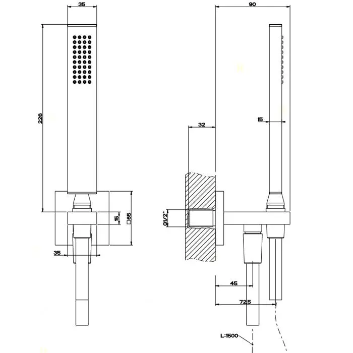 Gessi Rettangolo Душевой комплект: вывод на 1/2", держатель, шланг 1,5м и душевая лейка, цвет: хром