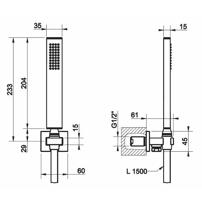 Gessi Rettangolo Душевой комплект: вывод на 1/2", держатель, шланг 1,5м и душевая лейка, цвет: Black XL