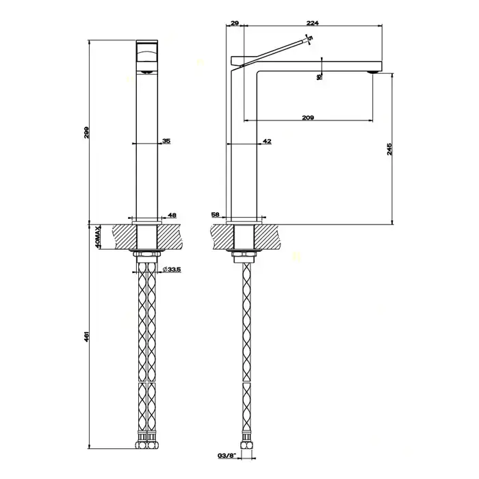 Gessi Rettangolo K Смеситель для раковины, встраиваемый, однорычажный, излив 249мм, внешние части, цвет: Black XL