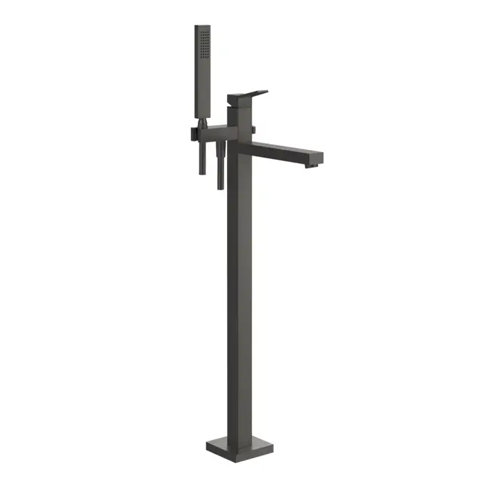 GESSI RETTANGOLO K Смеситель для ванны напольный, однорычажный, с ручным душем и шлангом 1500 мм., внешняя часть, цвет Black Metal Brushed PVD