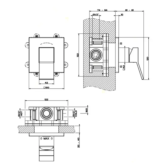 Gessi Rettangolo K Встраиваемый однорычажный смеситель без излива, внешняя часть, цвет: хром