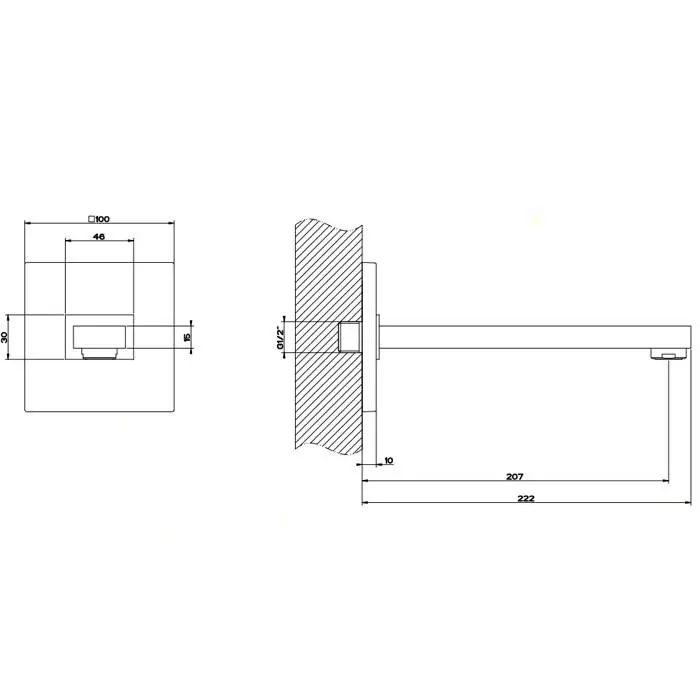 Gessi Rettangolo Настенный излив 197мм, для монтажа с удаленным управлением (не входит в комплект), цвет: хром