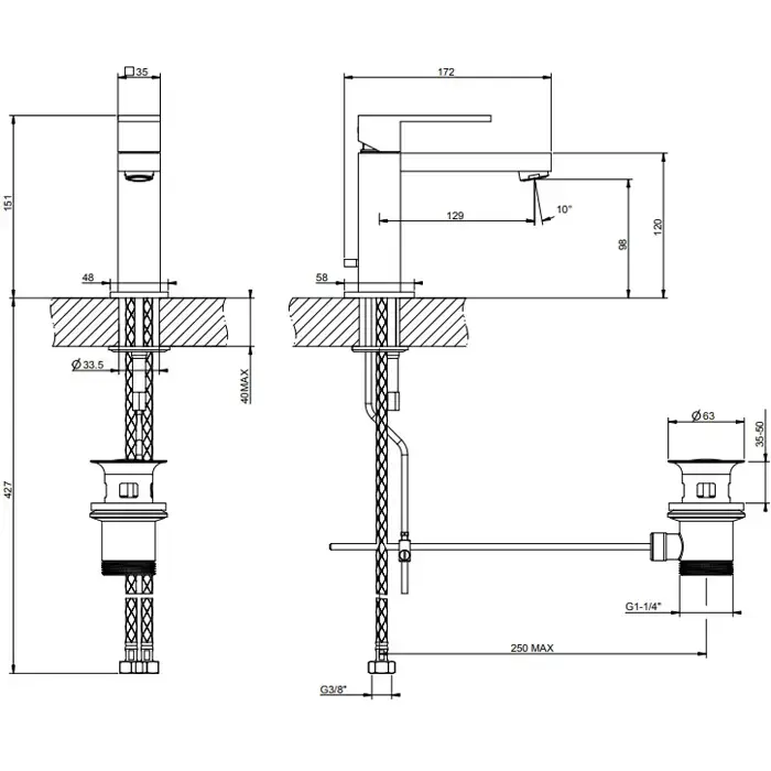 Gessi Rettangolo Смеситель для раковины на 1 отверстие с донным клапаном, цвет: Black XL