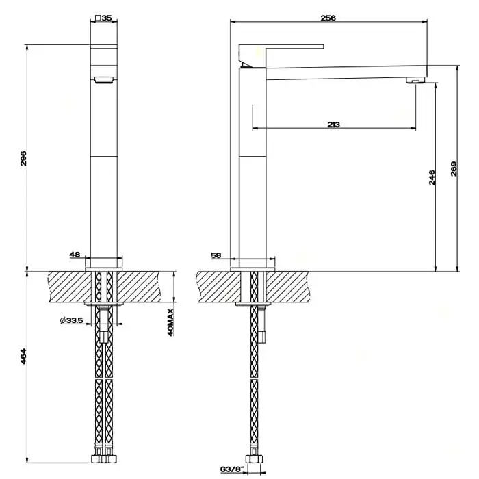 Gessi Rettangolo Смеситель для раковины с высоким изливом 213мм, цвет: хром
