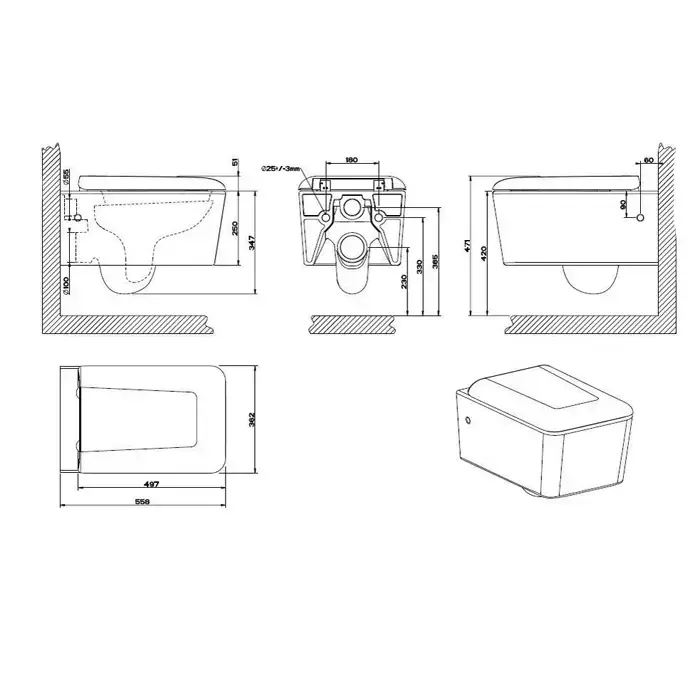 Gessi Rettangolo Унитаз подвесной 55.6х36.2см, в комплекте с сиденьем Soft Close, цвет: белый