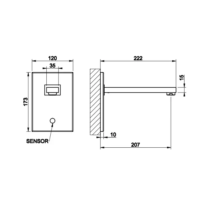 GESSI RETTANGOLO Смеситель для раковины настенный, электронный, внешняя часть, цвет хром