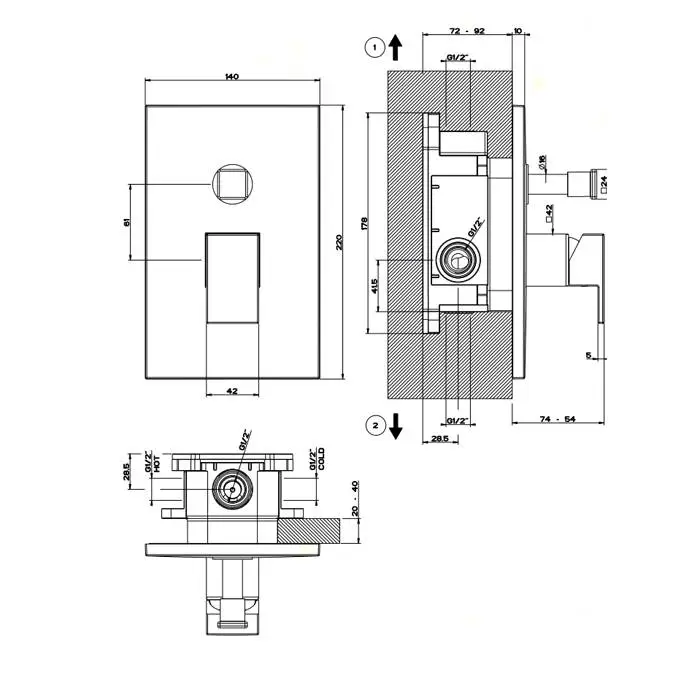 Gessi Rettangolo Встраиваемый однорычажный смеситель с автоматическим переключателем ванна/душ(внешние части), цвет: хром