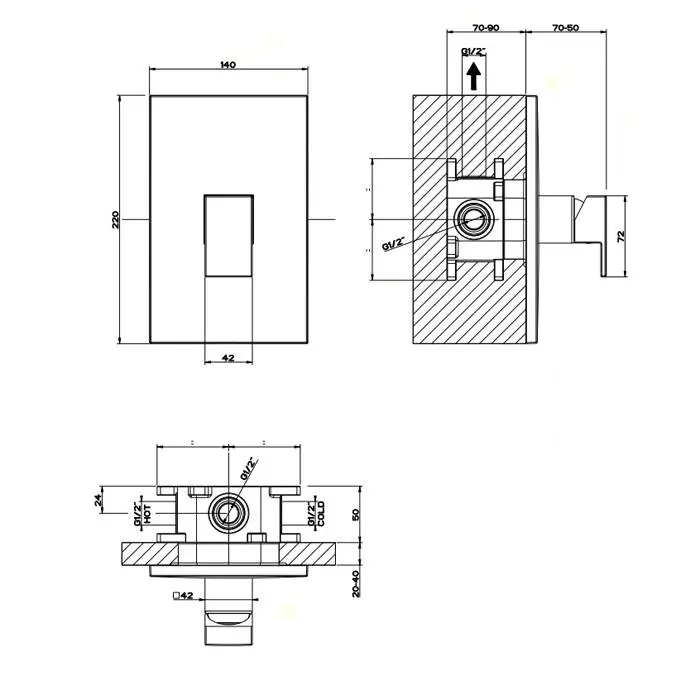 Gessi Rettangolo Вывод воды на 1/2", цвет: Black XL