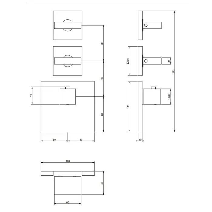 Gessi Rettangolo Смеситель для душа, встраиваемый, термостатический, подключение на 3/4", с 4мя независимыми выходами, внешняя часть, цвет: Black XL