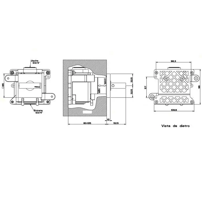 Gessi Rettangolo Встраиваемый запорный вентиль для термостатического смесителя, подключение на 3/4" (внешняя часть), цвет: хром
