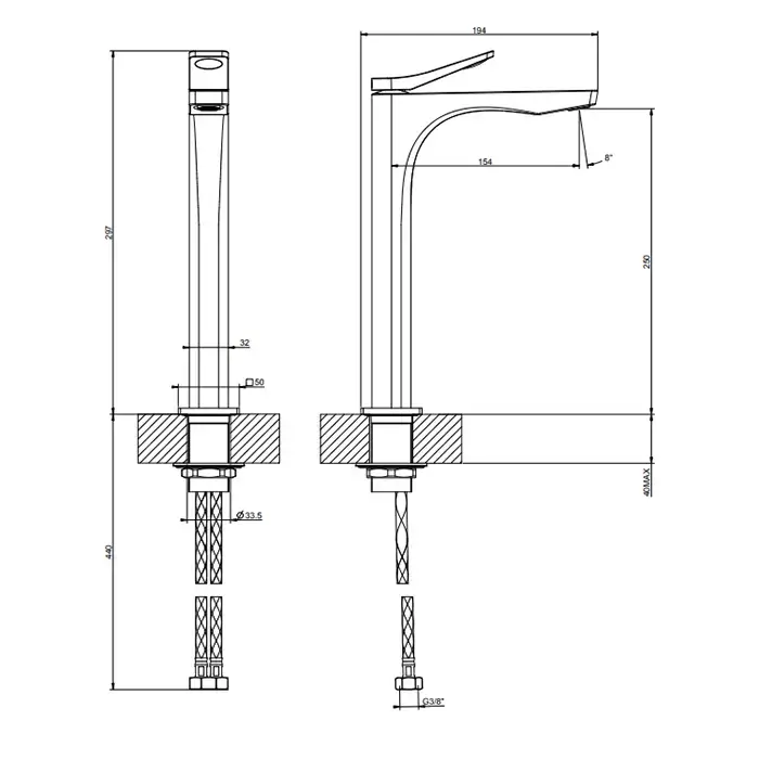 GESSI Rilievo Смеситель для раковины на 1 отв. без донного клапана h=297мм, излив 154мм , цвет: nero XL