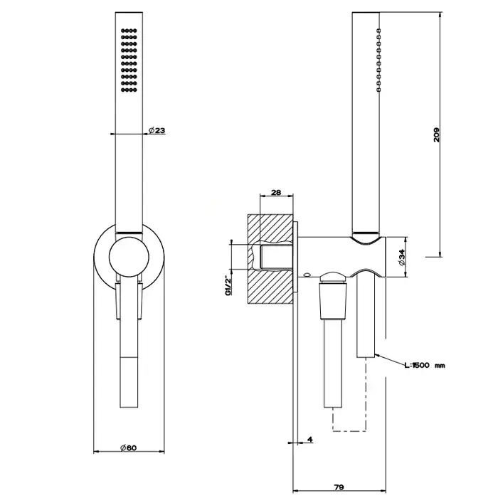 Gessi Shower316 Душевой комплект, состоящий из вывода воды на1/2", держателя, шланга 1,50 м и душевой лейки сзащитой от известкового налёта, цвет: шлифованная сталь