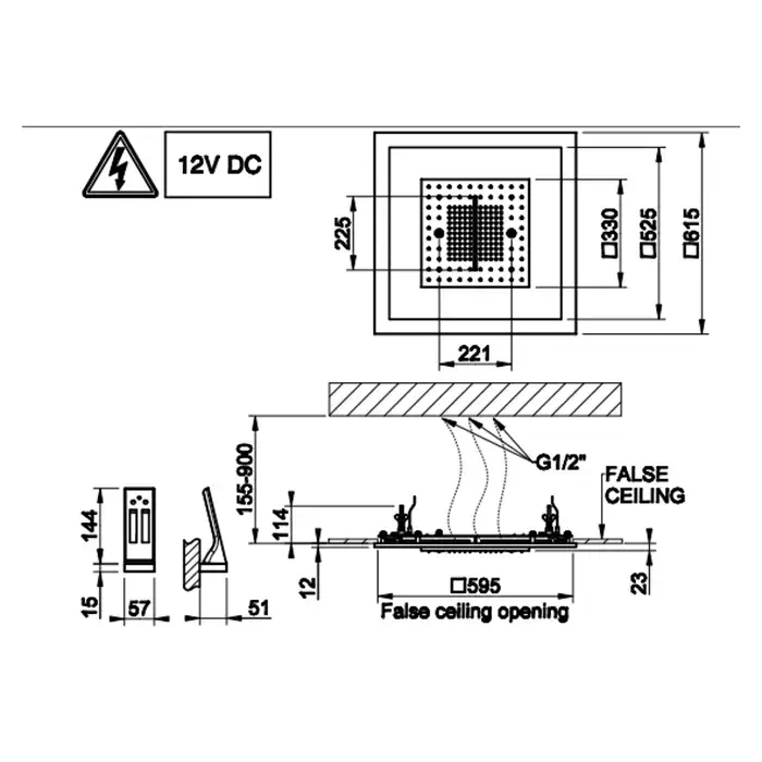 Gessi Rilievo Потолочная душевая головка на 1/2" 250x250 мм, длина изгот. под заказ (105 - 1855 мм), цвет: хром