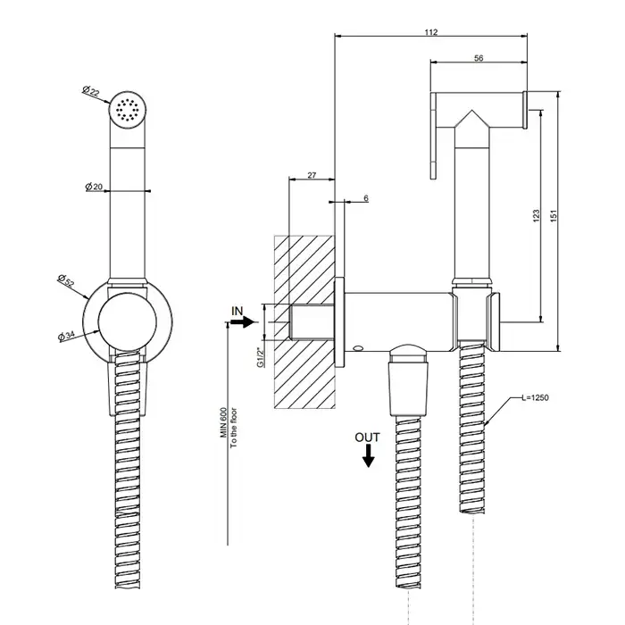 Gessi Tradizione Гигиенический душ, настенный, цвет: Black Metal Brushed PVD