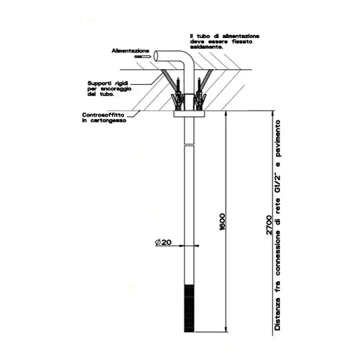 GESSI 316 Излив потолочный с удаленным управлением (не входит в комплект), цвет: steel brushed