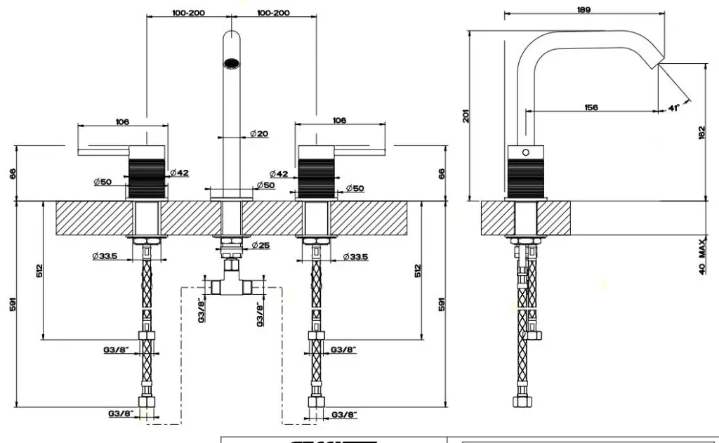 Gessi Trame Смеситель для раковины на 3 отверстия, без донного клапана. цвет: шлифованная сталь