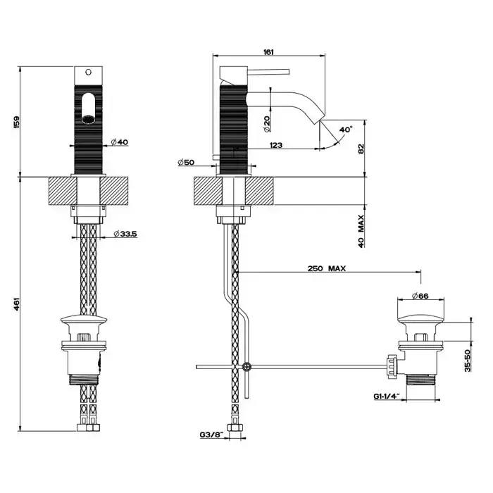 GESSI 316 Смеситель для раковины на 1 отверстие, с донным клапаном, излив 123мм, цвет: steel brushed