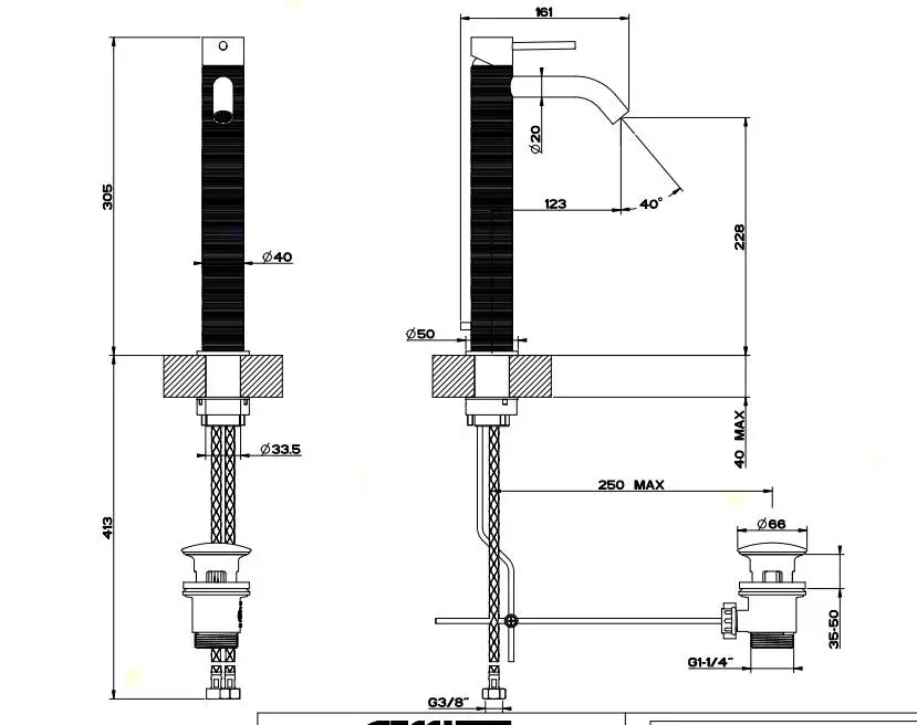 Gessi 316 Смеситель для раковины, на 1 отв., высокий h=30.5cм, с донным клапаном, излив: 15.5cм, цвет: Black XL