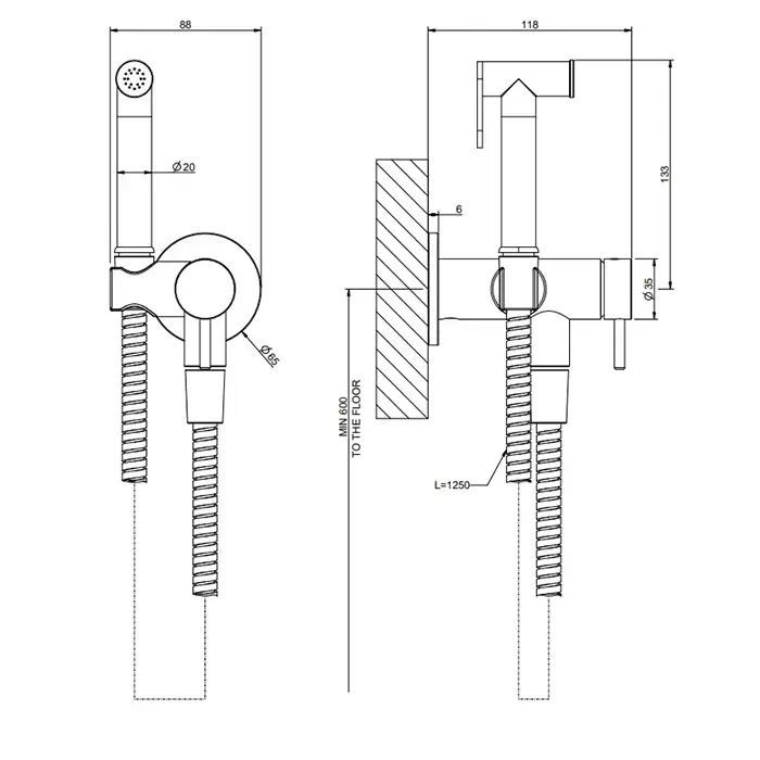 Gessi Transparenze Гигиенический душ, с настенным держателем, запорным краном, с шлангом 125cм. и подводом воды, цвет: Chrome Br.