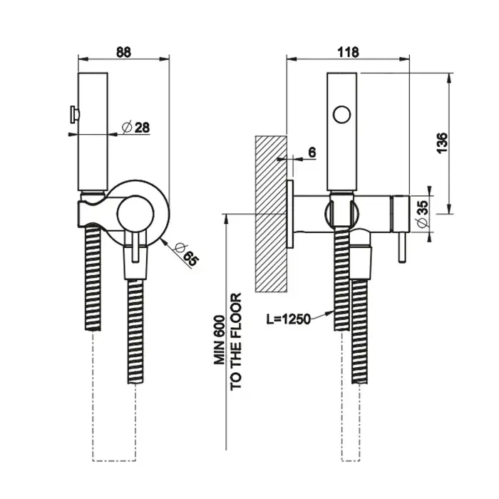 Gessi Transparenze Гигиенический душ, с настенным держателем, запорным краном, с подводом воды и шлангом 125cм., цвет: Copper Br. PVD