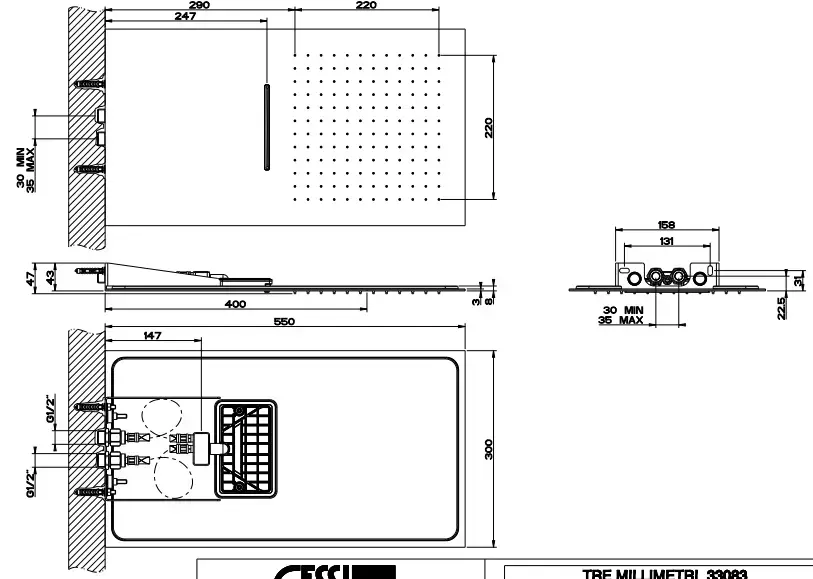 Gessi Tremillimetri Верхний душ QUADRO 30х55см., настенный, 2 режима: тропический ливень, водопад, цвет: Black Metal Brushed PVD