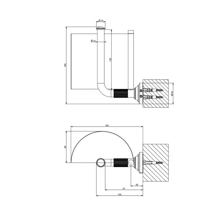 Gessi Venti20 Смеситель для раковины настенный, встраиваемый, однорычажный, излив 243 мм., внешняя часть, цвет: хром