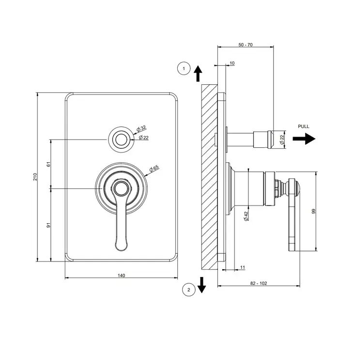 GESSI VENTI20 Смеситель встраиваемый, однорычажный, с переключателем на 2 положения, внешняя часть, цвет Copper Brushed PVD