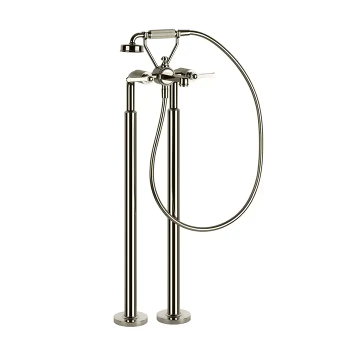Gessi Venti20 Смеситель для ванны, напольный, с ручным душем и шлангом 150см., цвет: Nickel PVD