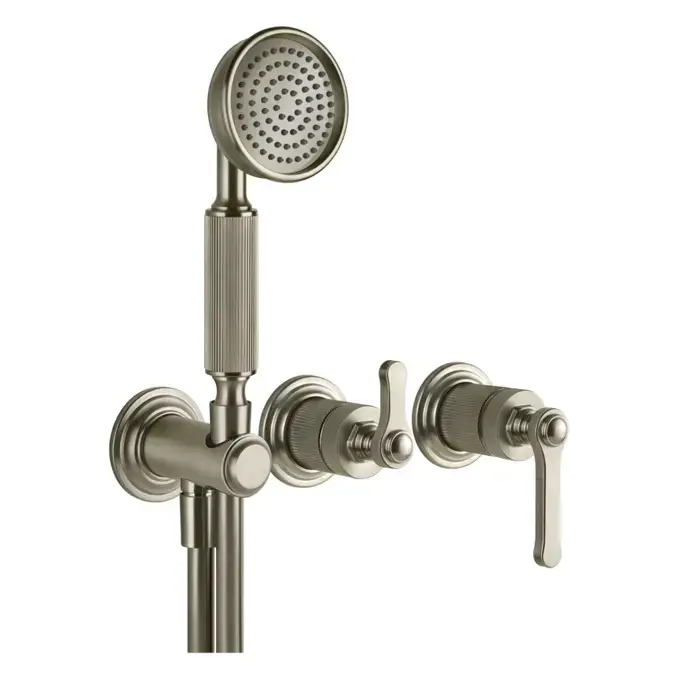 Gessi Venti20 Смеситель встраиваемый, однорычажный, с перекл. на 2 положения, с ручным душем и шлангом 150см., вн часть, цвет: Finox Brushed Nickel