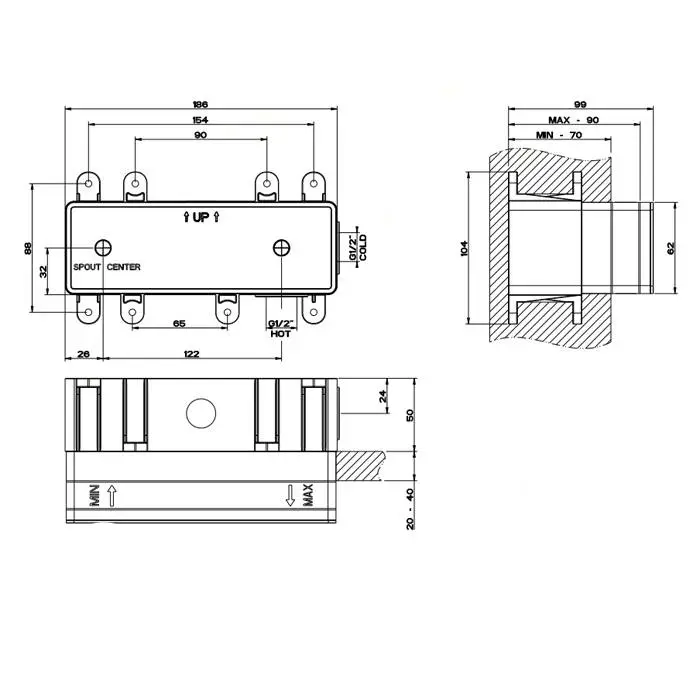 Gessi Внутренняя часть встраиваемого однорычажного смесителя с изливом
