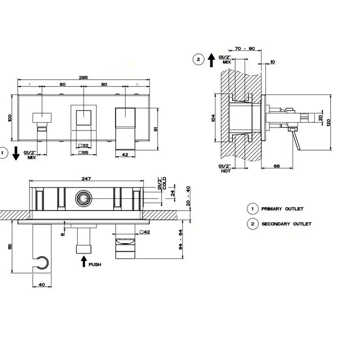 Gessi Внутренняя часть встраиваемого смесителя на 2 выхода