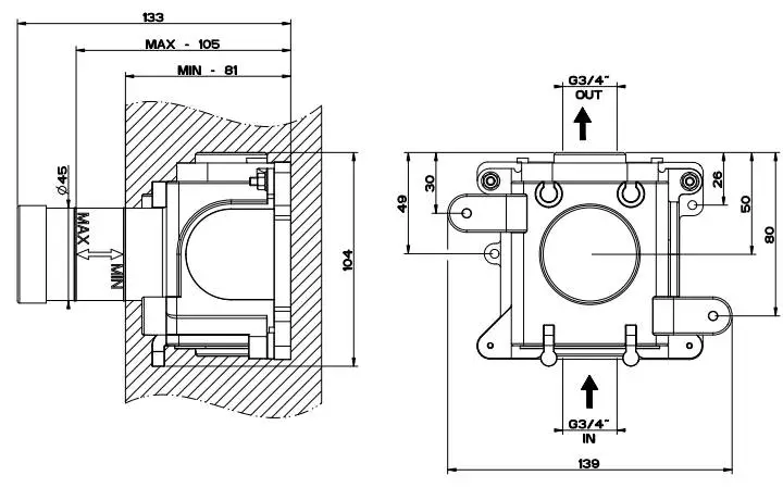 Gessi Внутренняя часть встраиваемого однорычажного смесителя