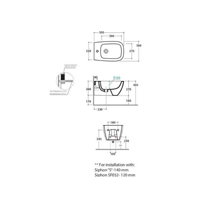 Globo Genesis Биде подвесное 55х36см., 1 отв., с креплением, цвет: белый матовый