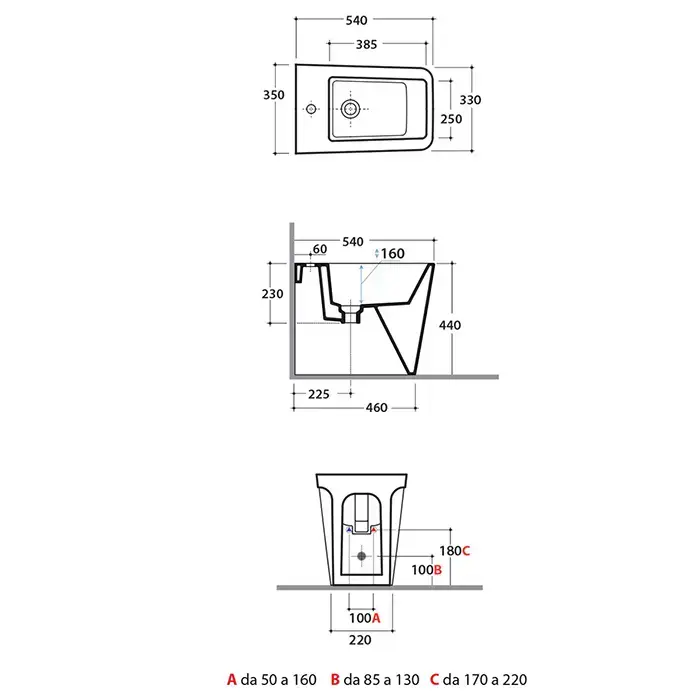 GLOBO Incantho Биде MULTI.приставное напольное 54х35х44см с 1 отв под смеситель,крепежи в комплекте цвет: белый
