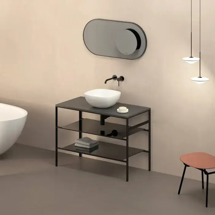 Burgbad FIUMO Зеркало 100x70x15 мм, подсветка LED, сенс выкл, обогрев, корпус Alu-Optik, 2 ящика, рейлинг черные, панель белая FOT2
