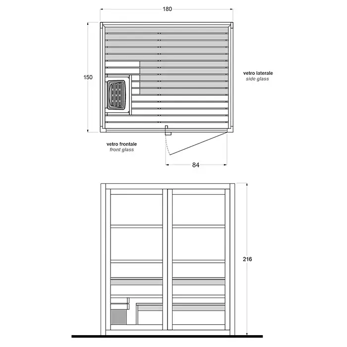 GRUPPO TREESSE AURA сауна 180х150х216Н, SX (левый вариант), подсветка, фронтальная дверь стекло/дерево
