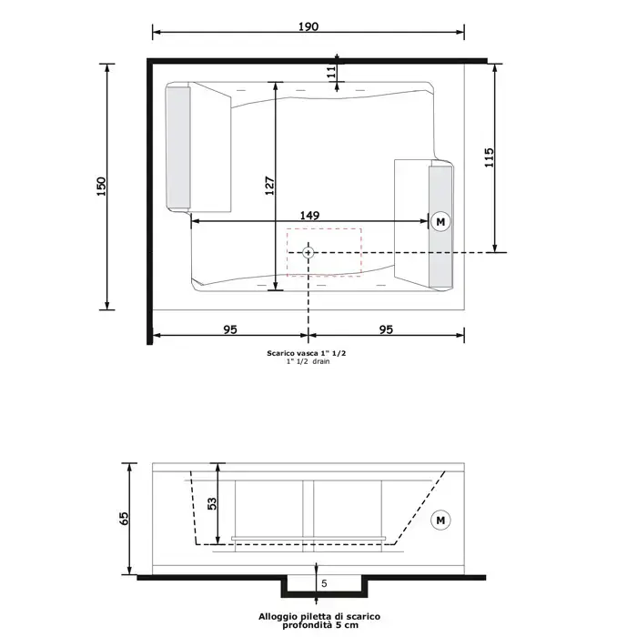 Gruppo Treesse BIS Ванна 190x150xh64 см гидром и аэром с цифр системой и сит дезинй\ф и пультом дист упр. 2 подушки белые,2 ручки,сливная колонка.