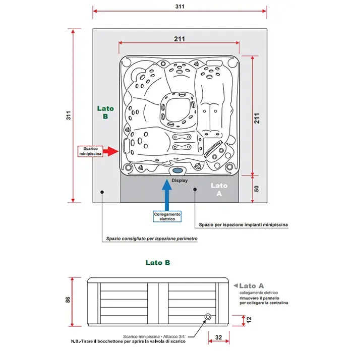 Gruppo Treesse Mykonos Минибассейн 211х211х86см отдельностс гидромасс, с автомат сист. рецирк.озонотер, цвет терапия,панели, крышка(СПЕЦЦЕНА со склад)