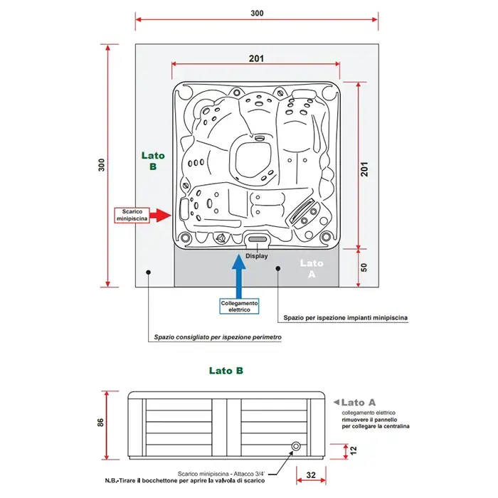 Gruppo Treesse Paros Минибассейн 201х201х86см., отдельностоящий, с панелями, с крышкой, цвет: белый