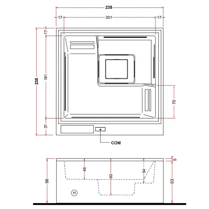 TREESSE Phantom Минибассейн 235 x 235 x 98h комплектация SP1, г/м+ нагреватель, фиотр-картридж, хромо-я 2, внешняя панель VTR белая , цвет белый